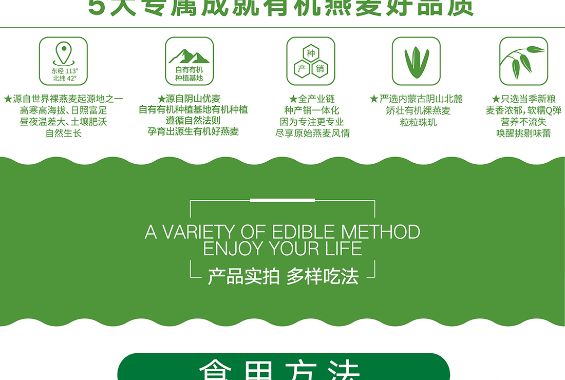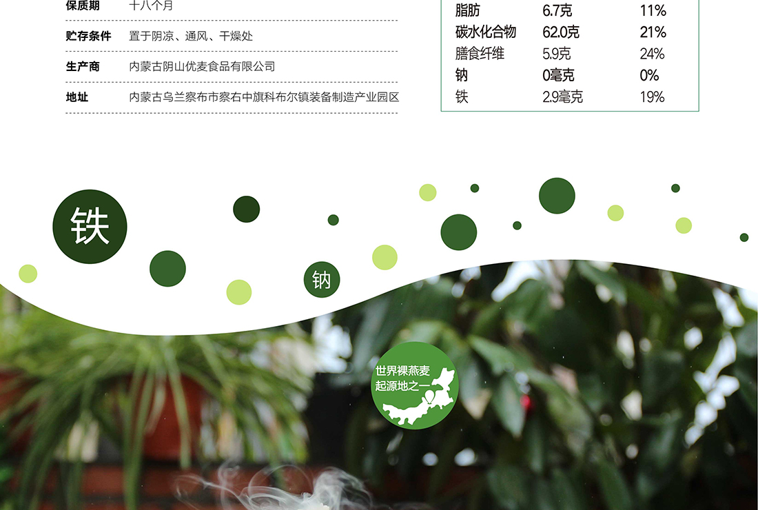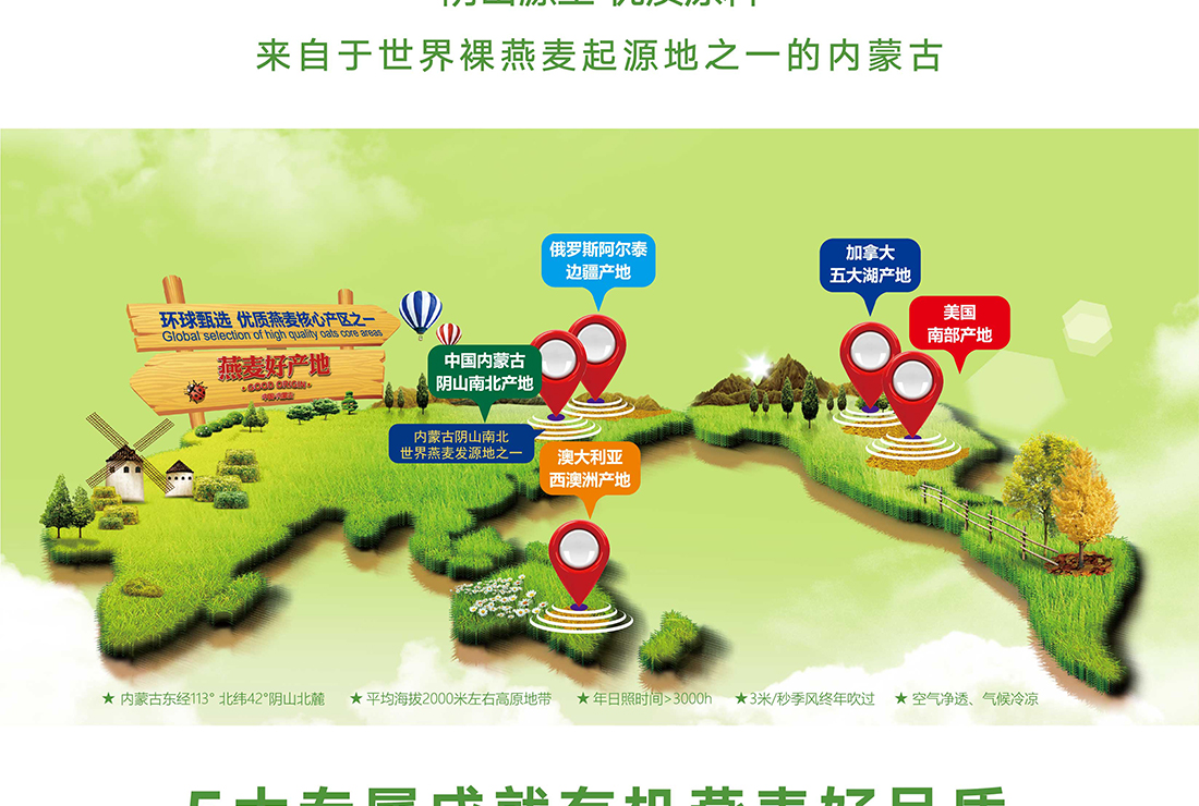 內蒙古,世界裸燕麥起源地之一;陰山源生燕麥在初出生滿足生長規(guī)律一切所需,高寒、高海拔、日照充足;遵循自然法則,靠天滋養(yǎng),自然生長;