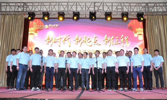 大會以播放短片的形式回顧了公司一年來的各項業(yè)務發(fā)展情況和取得的成績。副總經(jīng)理邰志東代表公司首先向全體人員致辭,而后在察右中旗烏蘭牧騎《時代贊歌》、《守望相助》的歌舞里拉開序幕。頒獎環(huán)節(jié),由22名優(yōu)秀行政管理人員、生產(chǎn)管理人員、生產(chǎn)服務人員、銷售人員和14個最佳效益獎、最佳質量獎、最佳合作伙伴獎、優(yōu)秀團隊獎、董事長特別獎的獲獎代表上臺接受了公司各級領導的頒獎和祝賀。同時,原種生產(chǎn)管理中心、脫毒組培中心、原種生產(chǎn)管理中心、物流倉儲中心用《民豐之歌》和《民豐我們的家》兩首大合唱表達了對公司的贊美和熱愛之情。最后,大會在烏蘭牧騎《在你偉大的懷抱里》的舞蹈里走向高潮。表彰大會和文藝演出穿插進行,環(huán)環(huán)相扣,方式新穎,得到了全體員工的一致好評,也為即將開始的新春生產(chǎn)種植工作注入了活力,帶來了動力。
